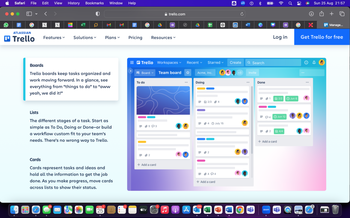 Overview: Trello is a popular project management tool that uses a visual, card-based system to help teams organize tasks, manage workflows, and collaborate efficiently. Its intuitive interface makes it easy to set up boards for different projects, assign tasks, and track progress. I’ve used Trello multiple times while working on projects and it is so easy to use.
